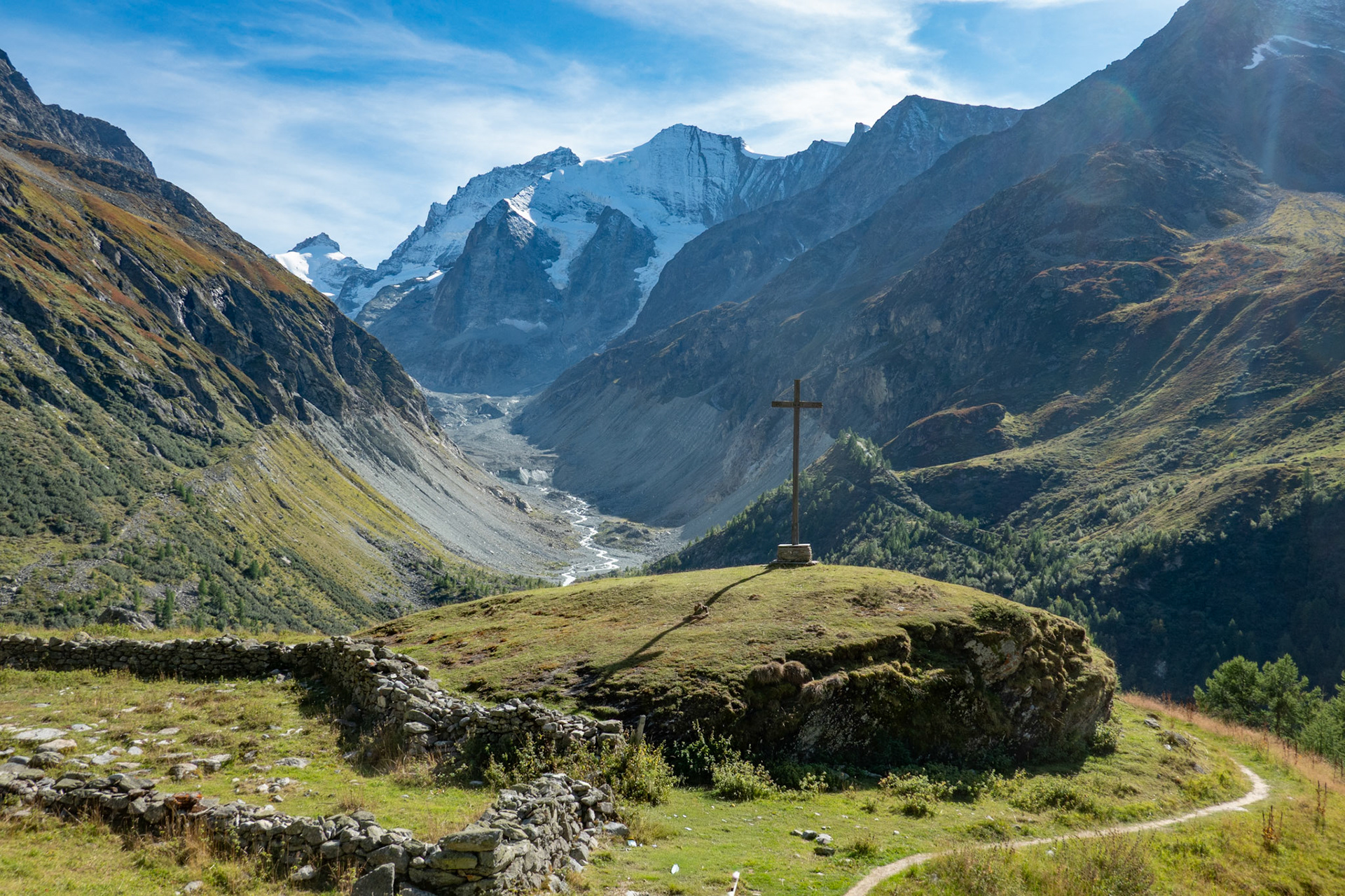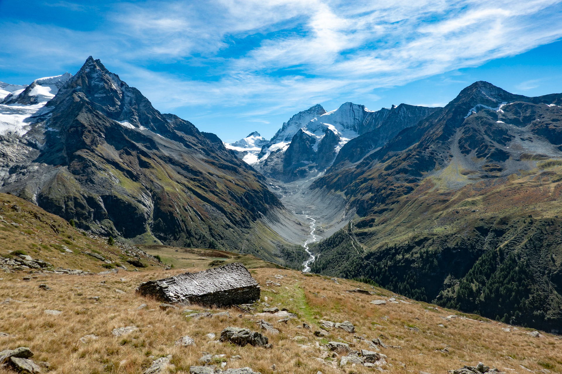 Our (very basic) hotel in Gruben. First bit of sun all day